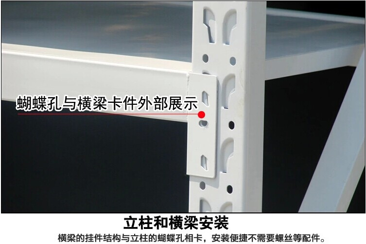 貨架是不用螺絲安裝,掛接式,是有2片立柱,8根橫梁,8塊或(4塊)組成